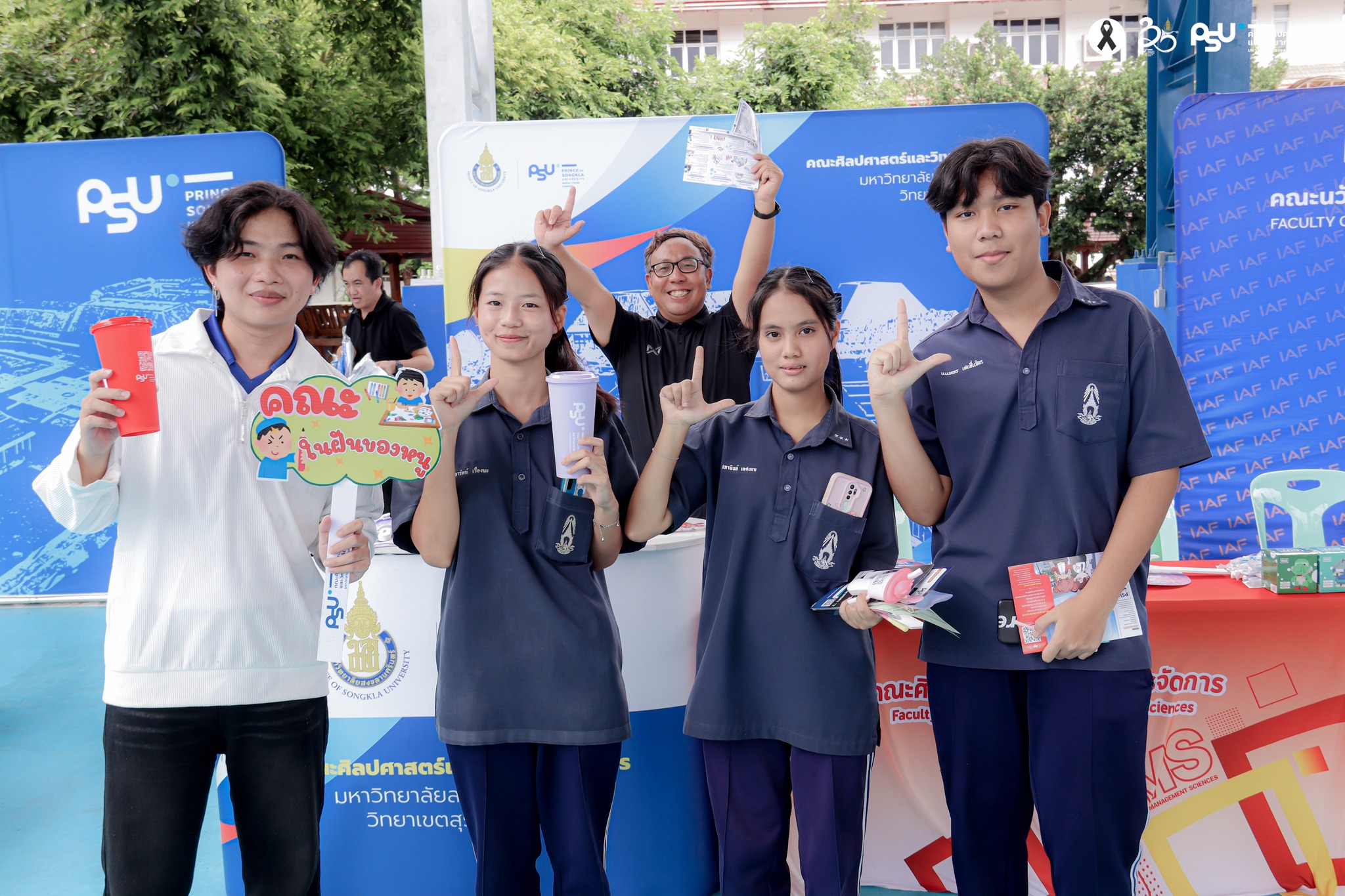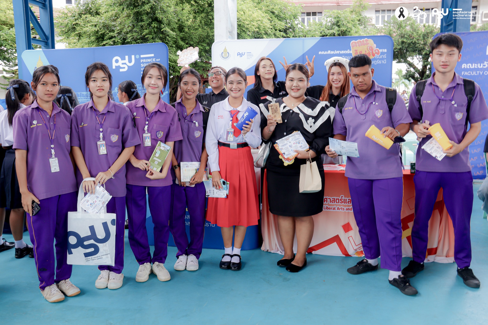 อาจารย์รภัสศักย์ เหตุทอง พร้อมทีมประชาสัมพันธ์จาก คณะศิลปศาสตร์และวิทยาการจัดการ มหาวิทยาลัยสงขลานครินทร์ (ม.อ.) เข้าร่วมโครงการ PSU ROADSHOW TCAS69 เพื่อแนะแนวและประชาสัมพันธ์หลักสูตรการเรียนรู้ยุคใหม่ของ ม.อ.