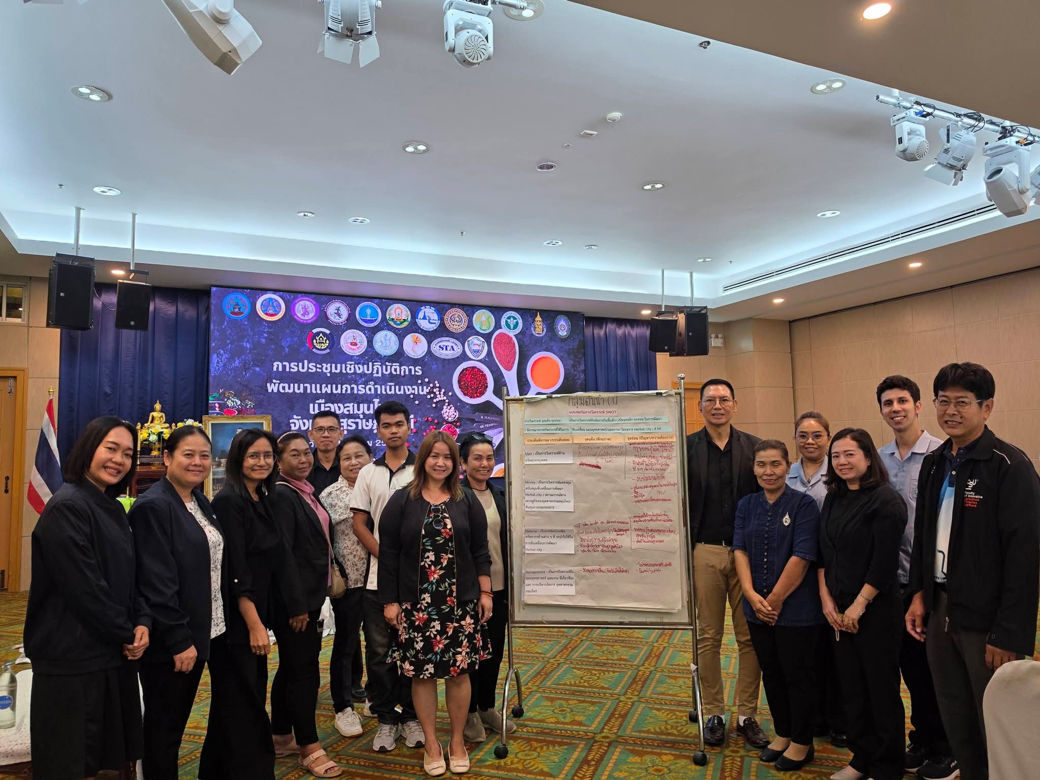 โดยได้รับเกียรติจาก นายบันดาล สถิรชวาล รองผู้ว่าราชการจังหวัดสุราษฎร์ธานี เป็นประธานประชุมเชิงปฏิบัติการ พร้อมด้วย ดร.วิชชุตา มาชู รองคณบดีฝ่ายยุทธศาสตร์และพันธกิจเพื่อสังคม คณะศิลปศาสตร์และวิทยาการจัดการ ผู้ช่วยศาสตราจารย์ ดร.ศิริพร เพ็งจันทร์ คณะอนุกรรมการพัฒนาเมืองสมุนไพรจังหวัดสุราษฎร์ธานี กลุ่มวิสาหกิจชุมชน ผู้ประกอบการด้านสุขภาพ หน่วยงานที่เกี่ยวข้อง และวิทยากร รวมทั้งสิ้น 50 คน