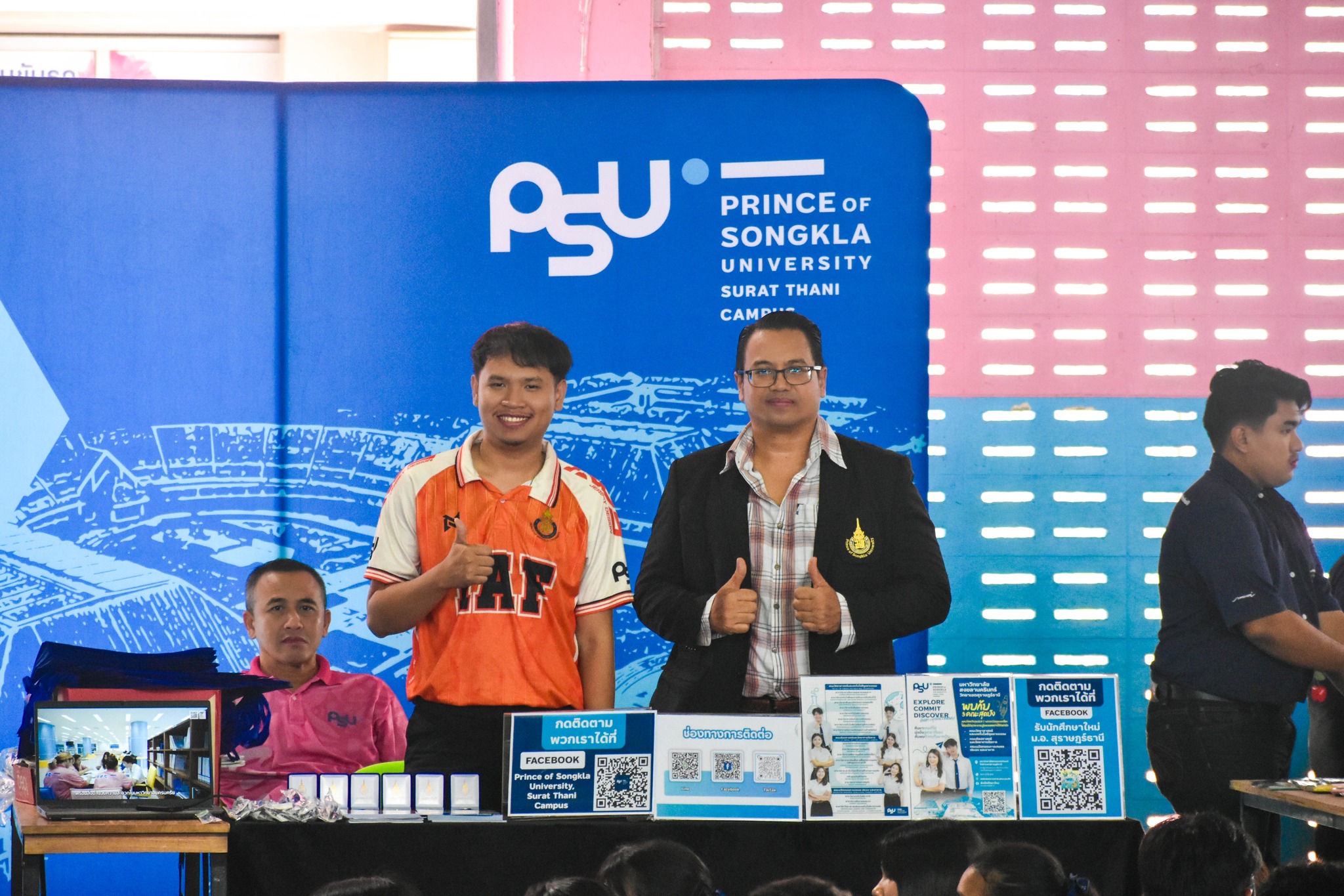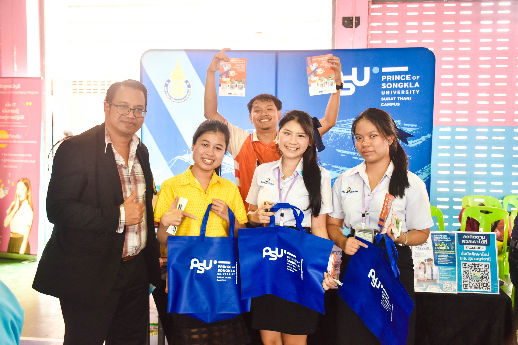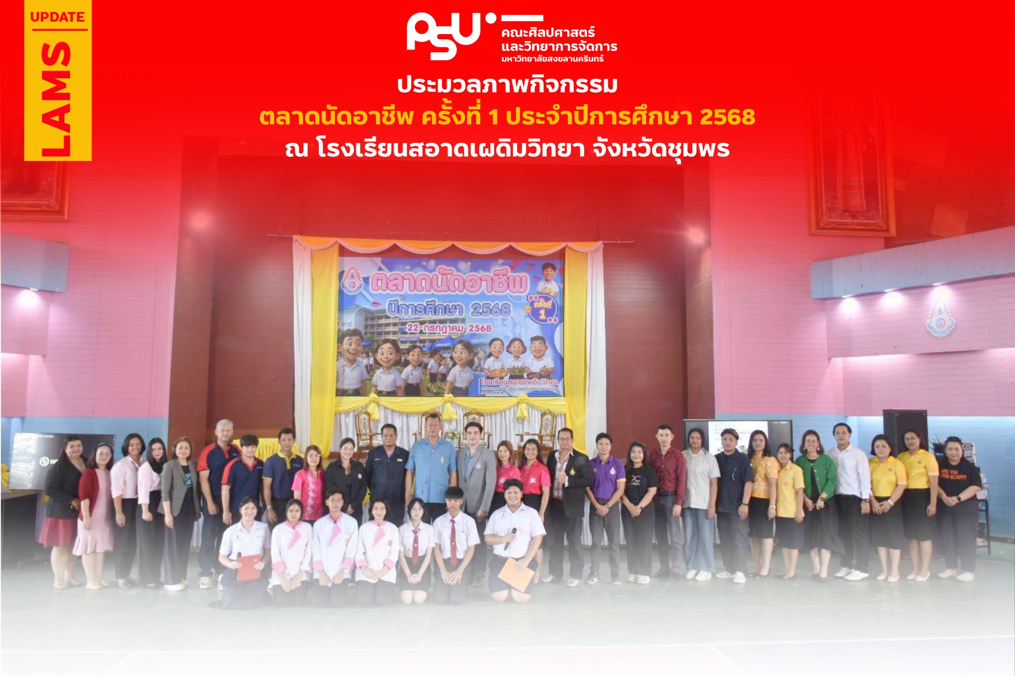 วันที่ 22 กรกฎาคม 2568 นำโดย ผู้ช่วยศาสตราจารย์ ว่าที่ร้อยตรี ดร.ธนภณ ภู่มาลา คณะกรรมการประชาสัมพันธ์และสื่อสารองค์กร คณะศิลปศาสตร์และวิทยาการจัดการ ร่วมกับวิทยาเขตสุราษฎร์ธานี ออกบูธประชาสัมพันธ์หลักสูตรและแนะแนวการศึกษาต่อให้กับน้อง ๆ นักเรียนระดับชั้น ม.4 - ม.6 ในกิจกรรม ตลาดนัดอาชีพ ครั้งที่ 1 ประจำปีการศึกษา 2568 ณ โรงเรียนสอาดเผดิมวิทยา จังหวัดชุมพร