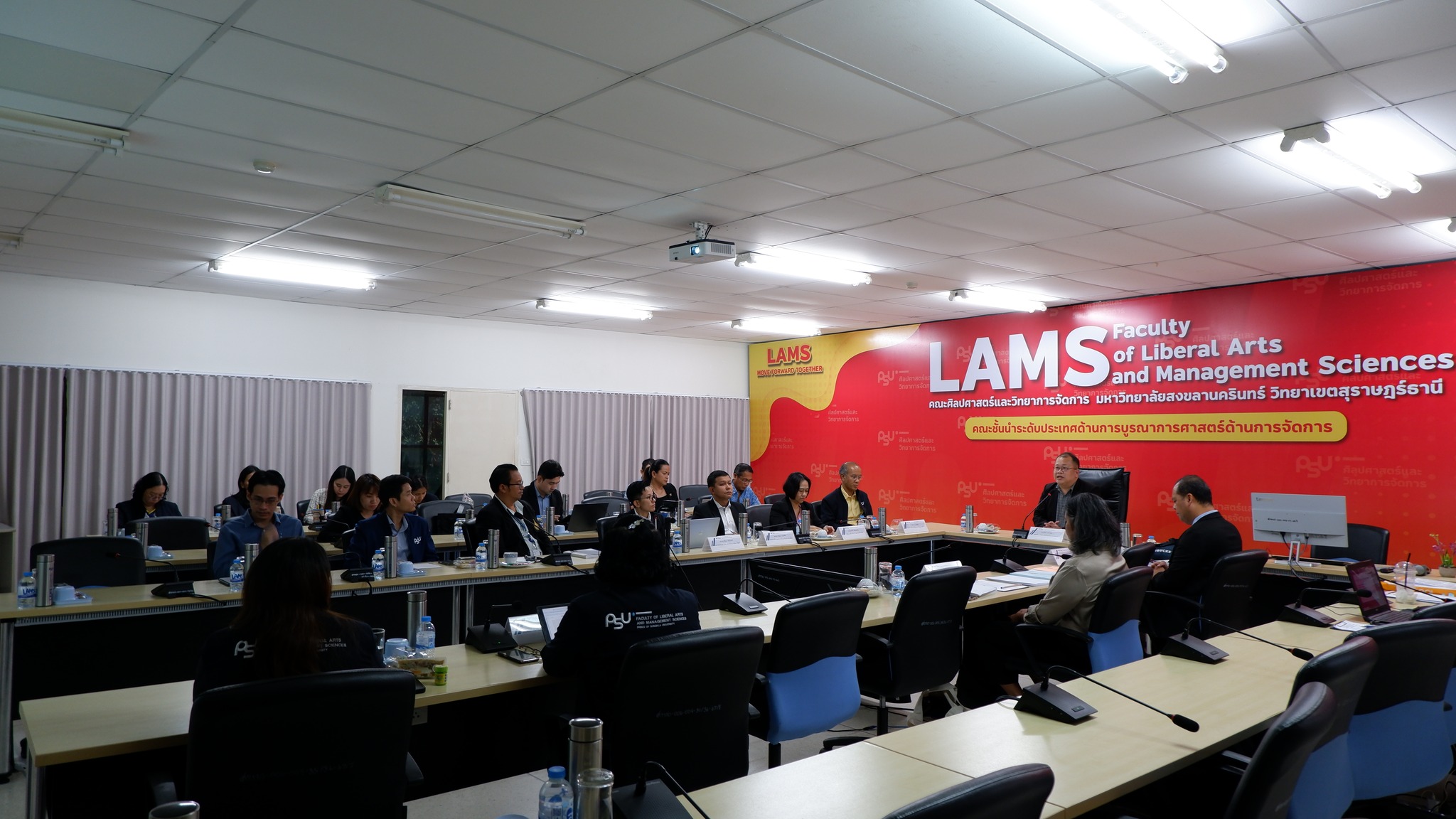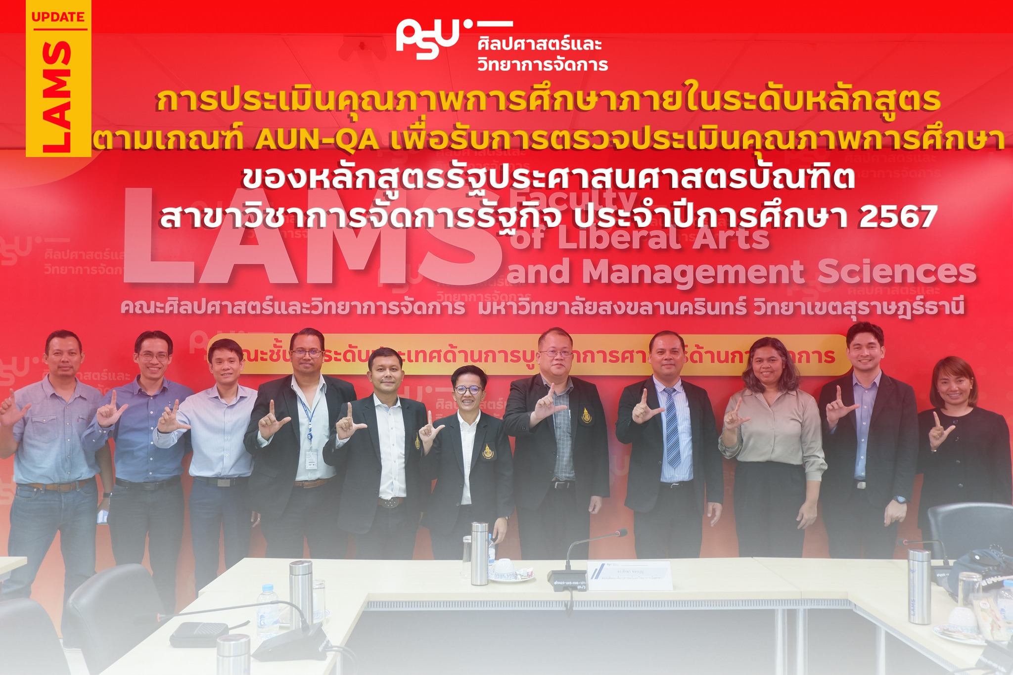 คณะศิลปศาสตร์และวิทยาการจัดการ นำโดย ดร.ศักดา ขจรบุญ คณบดี พร้อมด้วยผู้บริหาร ประธานคณะกรรมการหลักสูตรรัฐประศาสนศาสตรบัณฑิต สาขาวิชาการจัดการรัฐกิจ คณาจารย์ และบุคลากรสายอำนวยการ ให้การต้อนรับคณะกรรมการประเมินคุณภาพการศึกษาภายในระดับหลักสูตร ตามเกณฑ์ AUN-QA เพื่อรับการตรวจประเมินคุณภาพการศึกษาภายในของหลักสูตร ประจำปีการศึกษา 2567 โดยมี ผู้ช่วยศาสตราจารย์ ดร.นภดล ทิพย์รัตน์ ประธานกรรมการ และ ผู้ช่วยศาสตราจารย์ ดร.นุจรีย์ แซ่จิว กรรมการ
