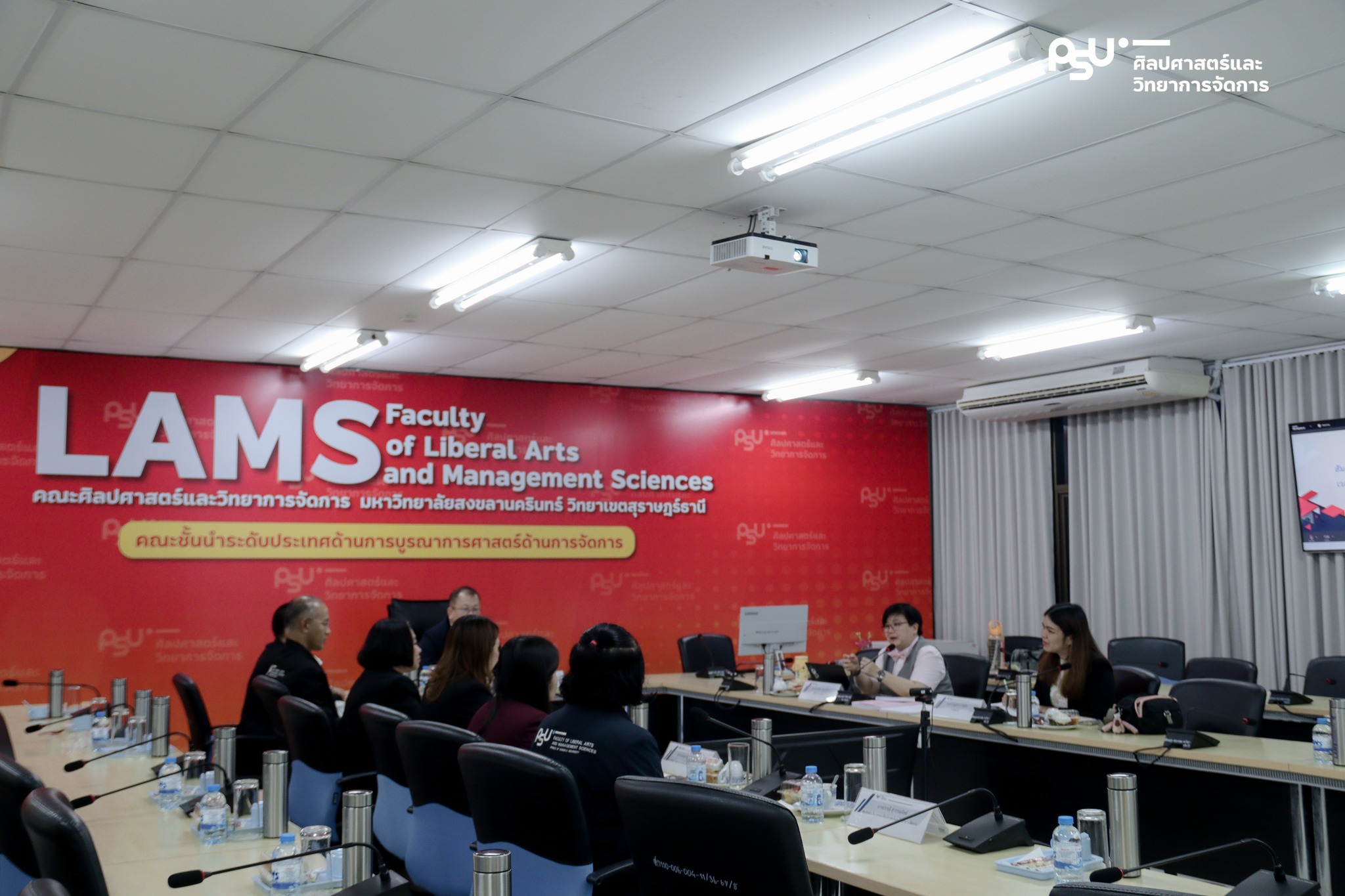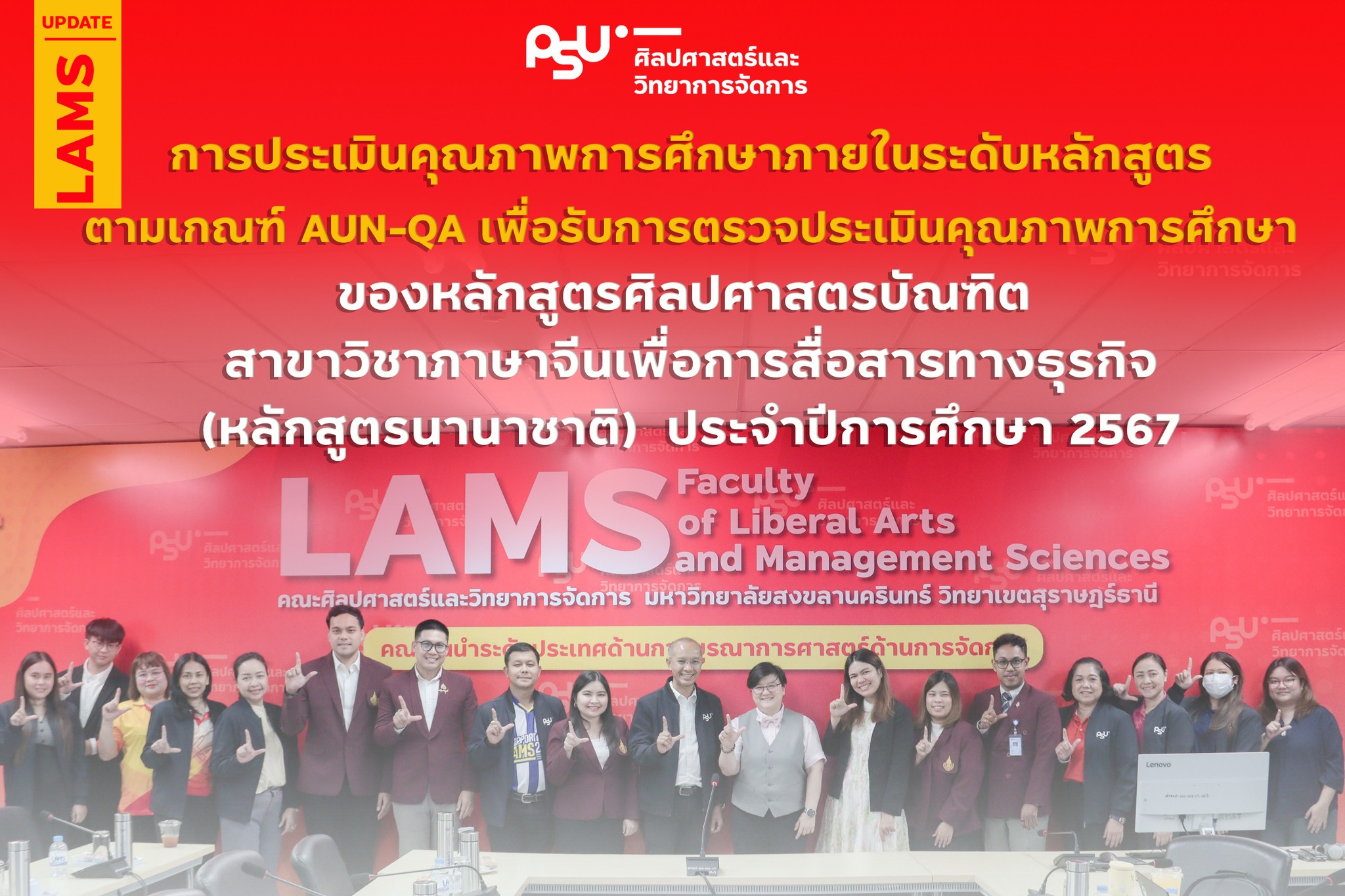 คณะศิลปศาสตร์และวิทยาการจัดการ นำโดย ดร.ศักดา ขจรบุญ คณบดี พร้อมด้วยผู้บริหาร ประธานคณะกรรมการหลักสูตรศิลปศาสตรบัณฑิต สาขาวิชาภาษาจีนเพื่อการสื่อสารทางธุรกิจ (หลักสูตรนานาชาติ) คณาจารย์ และบุคลากรสายอำนวยการ ให้การต้อนรับคณะกรรมการประเมินคุณภาพการศึกษาภายในระดับหลักสูตร ตามเกณฑ์ AUN-QA เพื่อรับการตรวจประเมินคุณภาพการศึกษาภายในของหลักสูตร ประจำปีการศึกษา 2567 โดยมี รองศาสตราจารย์ ดร.แสงสุรีย์ วสุพงศ์อัยยะ ประธานกรรมการ และ ผู้ช่วยศาสตราจารย์ ดร.ณัฏฐากร วรอัฐสิน กรรมการ การตรวจประเมินคุณภาพการศึกษาภายในระดับหลักสูตรตามเกณฑ์ AUN-QA ในครั้งนี้ นับเป็นโอกาสสำคัญที่หลักสูตรศิลปศาสตรบัณฑิต สาขาวิชาภาษาจีนเพื่อการสื่อสารทางธุรกิจ (หลักสูตรนานาชาติ) จะได้นำข้อเสนอแนะจากคณะกรรมการผู้ทรงคุณวุฒิมาใช้เป็นแนวทางในการพัฒนาหลักสูตรให้มีความเข้มแข็ง ทั้งในด้านการจัดการเรียนการสอน การพัฒนาศักยภาพผู้เรียน การบริหารจัดการหลักสูตร ตลอดจนการเชื่อมโยงกับภาคธุรกิจและความต้องการของตลาดแรงงานระหว่างประเทศ ทางคณะฯ ขอขอบคุณคณะกรรมการผู้ประเมินทุกท่าน ที่ได้ให้คำแนะนำอย่างสร้างสรรค์ ตรงประเด็น และเป็นประโยชน์ยิ่งต่อการพัฒนาหลักสูตร ซึ่งจะถูกนำไปประยุกต์ใช้ในการวางแผนพัฒนาคุณภาพการศึกษาอย่างเป็นระบบต่อไป