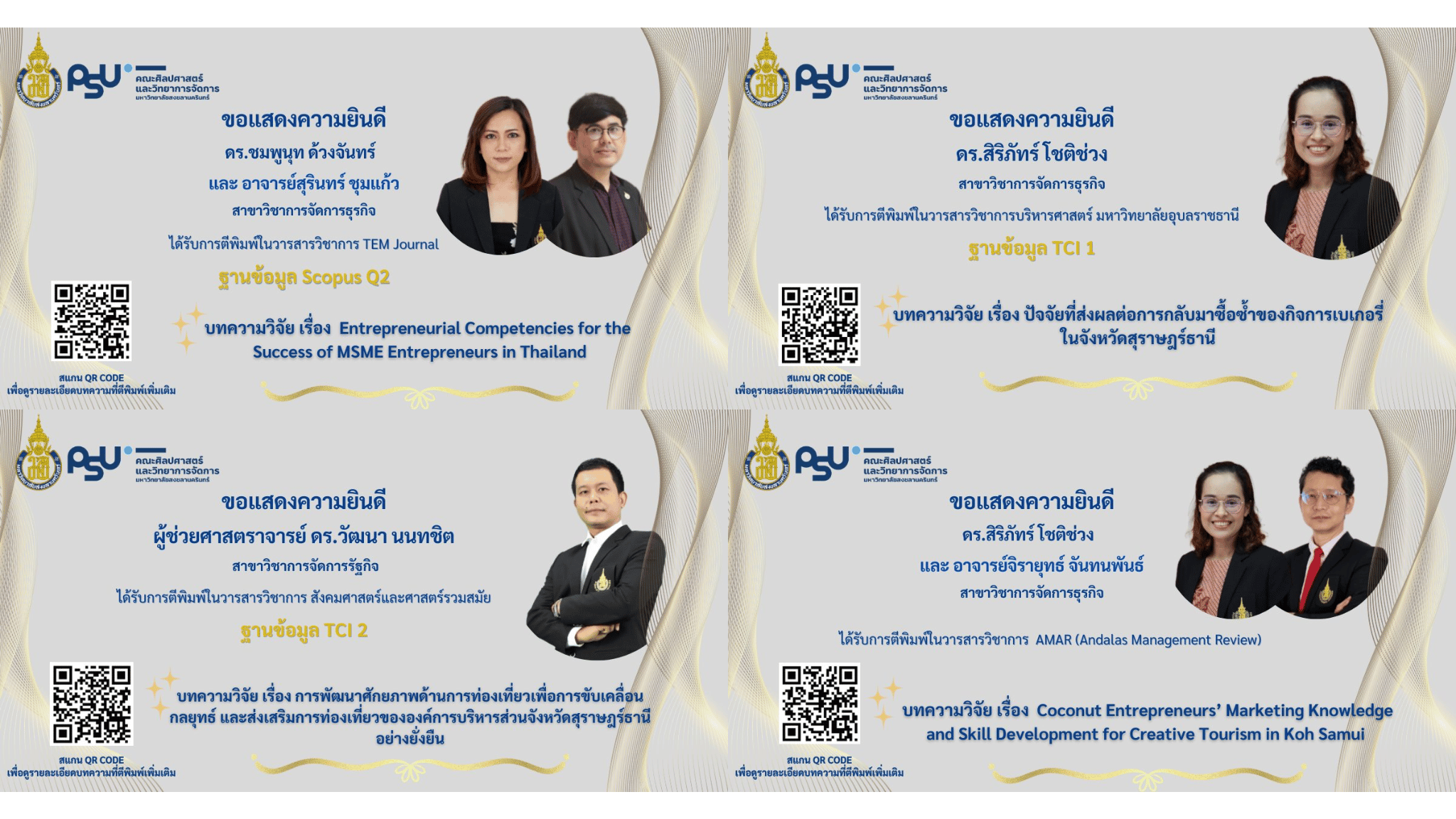 คณะศิลปศาสตร์และวิทยาการจัดการ ขอแสดงความยินดียิ่งแด่ คณาจารย์ทุกท่าน ในโอกาสที่ผลงานบทความวิจัยได้รับการตีพิมพ์ในวารสารทางวิชาการระดับคุณภาพ
