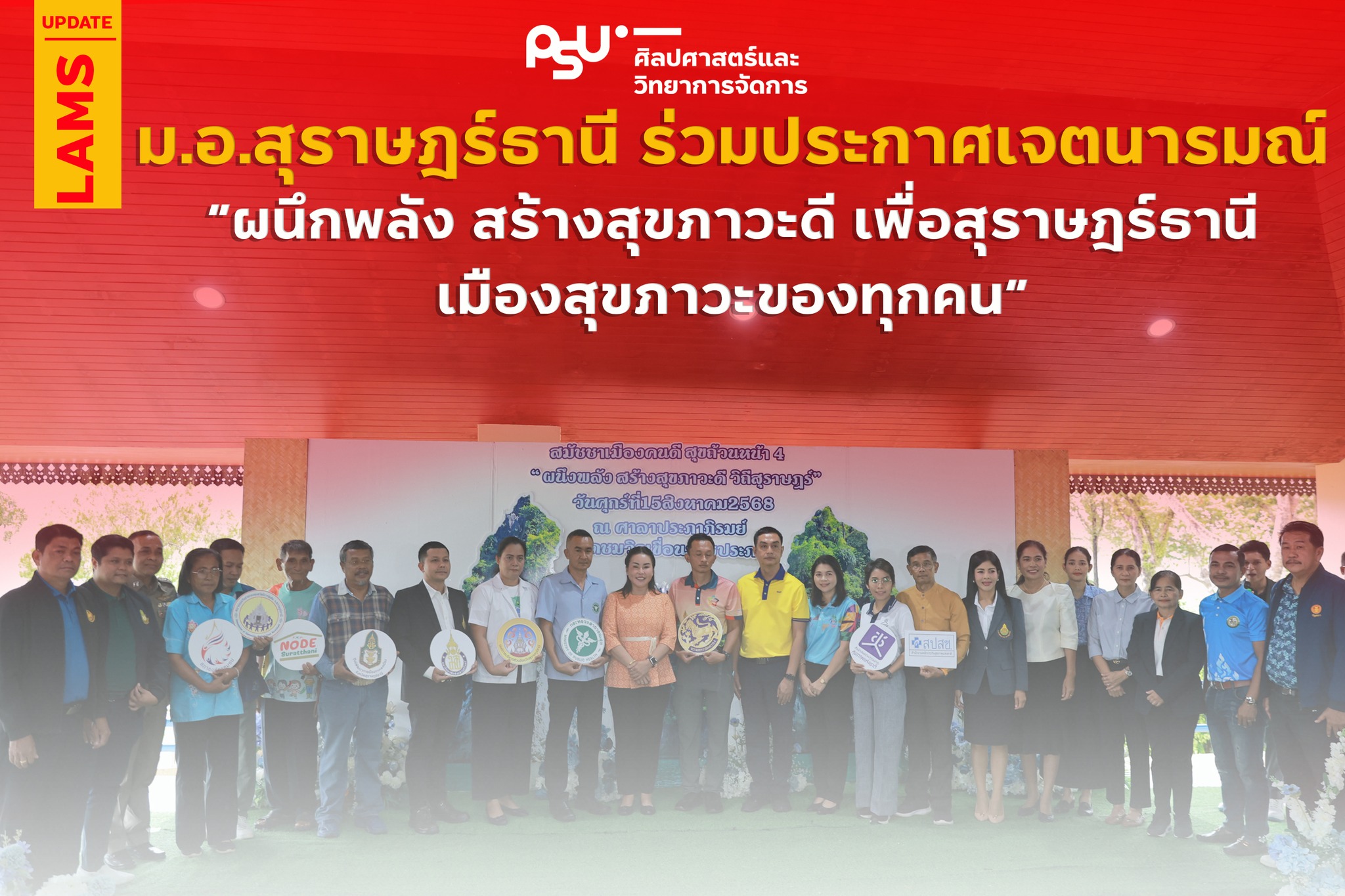 ม.อ.สุราษฎร์ธานี ร่วมประกาศเจตนารมณ์ “ผนึกพลัง สร้างสุขภาวะดี เพื่อสุราษฎร์ธานี เมืองสุขภาวะของทุกคน”