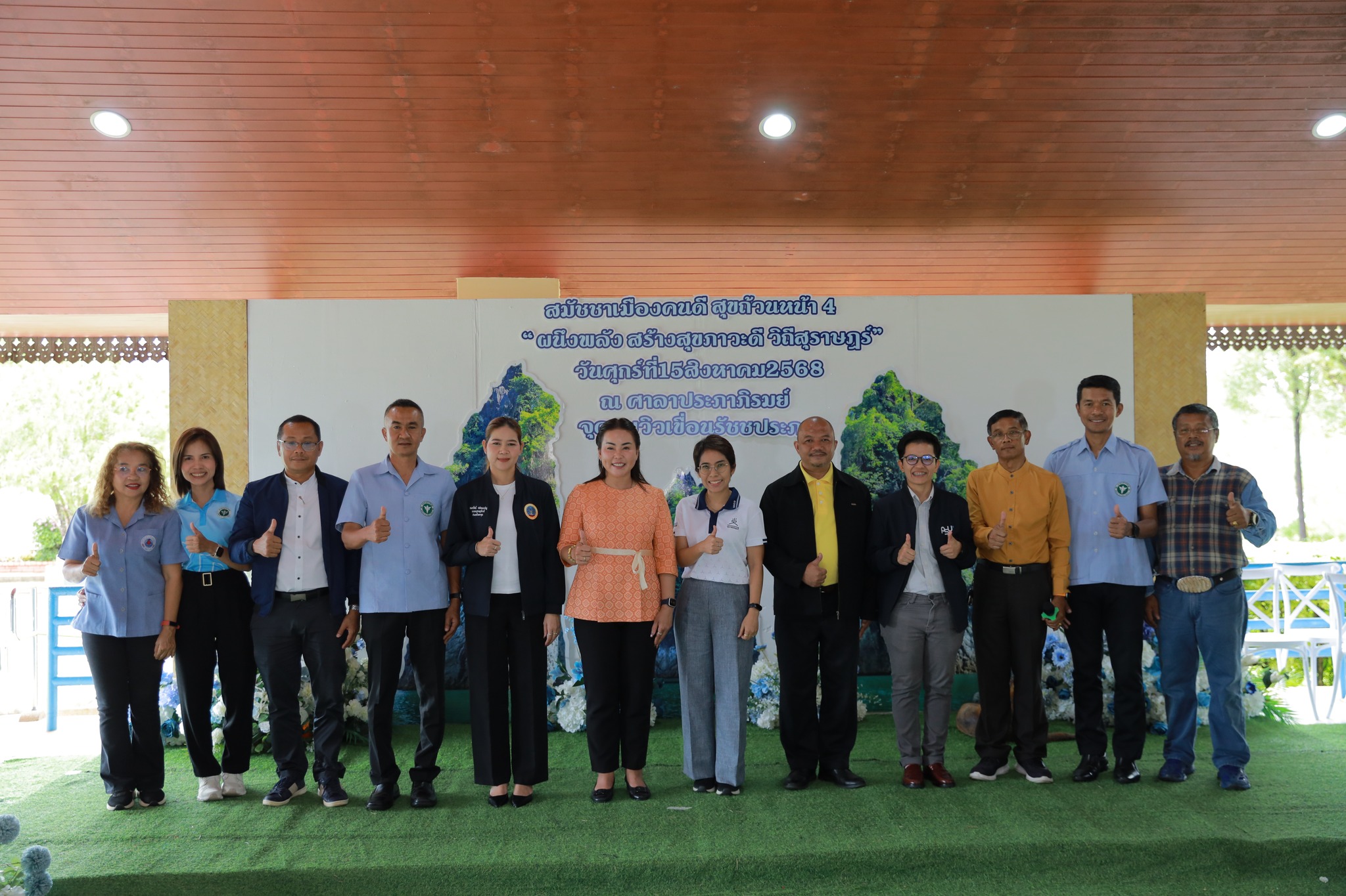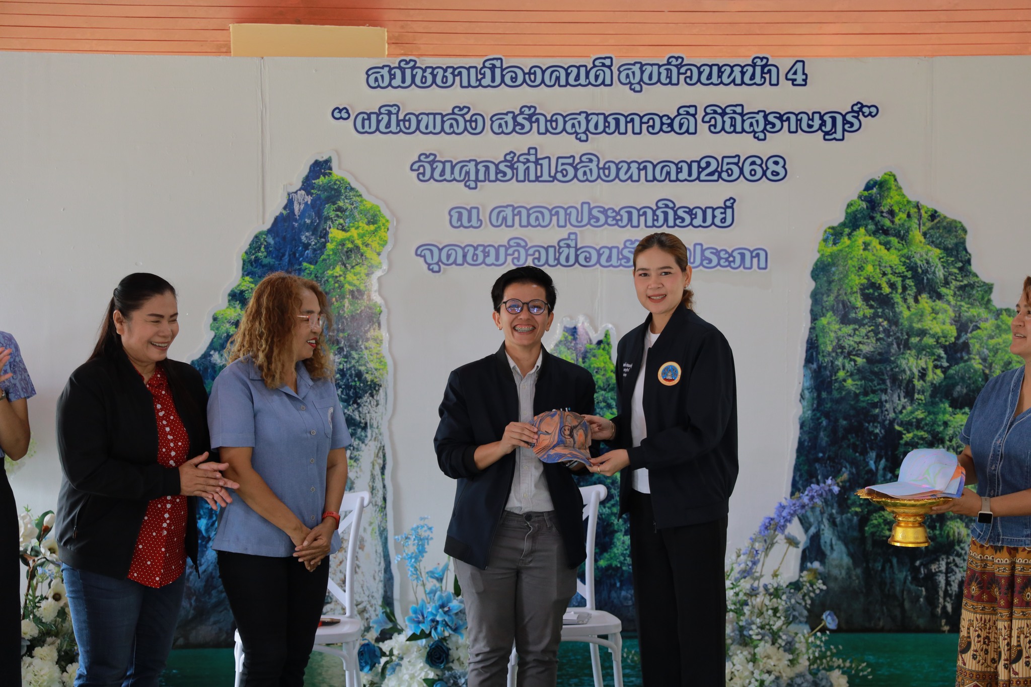 มหาวิทยาลัยสงขลานครินทร์ วิทยาเขตสุราษฎร์ธานี โดย ผู้ช่วยศาสตราจารย์ ดร.วัฒนา นนทชิต รองคณบดีฝ่ายยุทธศาสตร์และพันธกิจเพื่อสังคม คณะศิลปศาสตร์และวิทยาการจัดการ (ผู้แทนรองอธิการบดีวิทยาเขตสุราษฎร์ธานี) เข้าร่วมงาน สมัชชาเมืองฅนดี สุขถ้วนหน้า ครั้งที่ 4 พร้อมร่วม ประกาศเจตนารมณ์ “ผนึกพลัง สร้างสุขภาวะดี เพื่อสุราษฎร์ธานี เมืองสุขภาวะของทุกคน” งานจัดขึ้นเมื่อวันที่ 15 สิงหาคม 2568 ณ ศาลาประภาภิรมย์ จุดชมวิวเขื่อนรัชชประภา ตำบลเขาพัง อำเภอบ้านตาขุน จังหวัดสุราษฎร์ธานี โดยมีเครือข่ายสมัชชาสุขภาพจังหวัดสุราษฎร์ธานี และภาคีเครือข่ายจากหลายภาคส่วนร่วมแสดงพลังความร่วมมือ
