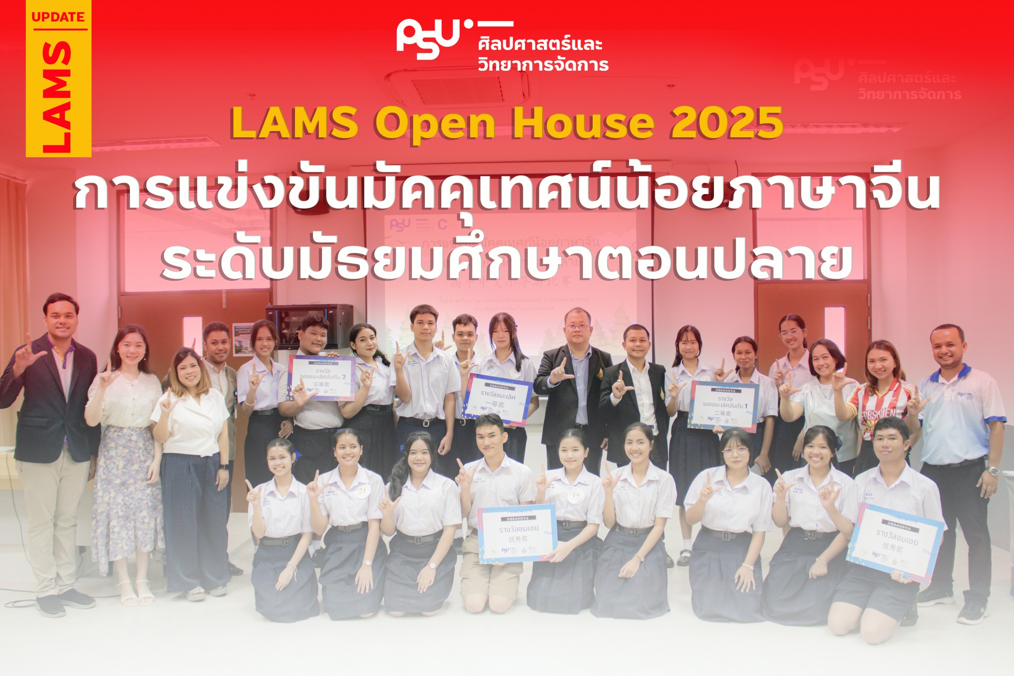 เมื่อวันที่ 19 สิงหาคม 2568 ณ มหาวิทยาลัยสงขลานครินทร์ วิทยาเขตสุราษฎร์ธานี คณะศิลปศาสตร์และวิทยาการจัดการ ได้จัด การแข่งขันมัคคุเทศน์น้อยภาษาจีน ระดับมัธยมศึกษาตอนปลาย ภายใต้กิจกรรม LAMS Open House 2025 ซึ่งเป็นส่วนหนึ่งของงาน ม.อ.วิชาการ 2568