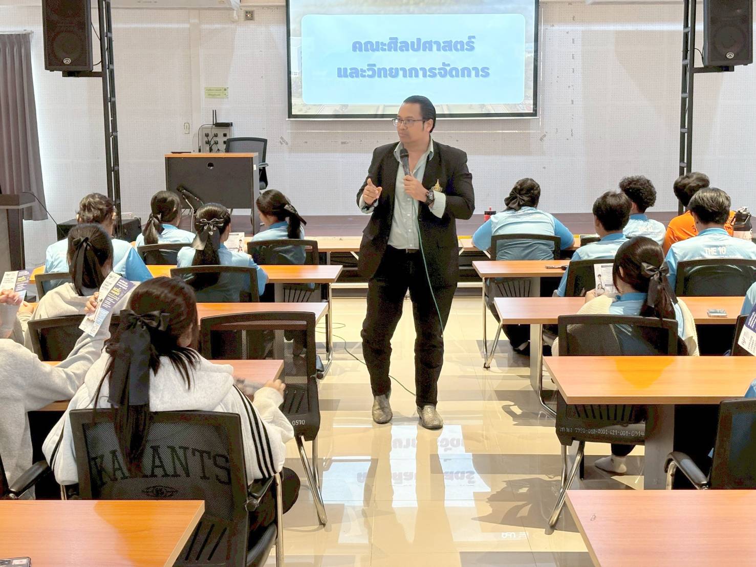 วันที่ 28 สิงหาคม 2568 นำโดย ผู้ช่วยศาสตราจารย์ ว่าที่ร้อยตรี ดร.ธนภณ ภู่มาลา คณะกรรมการประชาสัมพันธ์และสื่อสารองค์กร คณะศิลปศาสตร์และวิทยาการจัดการ ร่วมกับวิทยาเขตสุราษฎร์ธานี ออกบูธประชาสัมพันธ์หลักสูตรและแนะแนวการศึกษาต่อให้กับน้อง ๆ นักเรียนระดับชั้น ม.4 - ม.6 ณ โรงเรียนอ่าวลึกประชาสรรค์ วิทยาลัยเทคนิคพังงา และโรงเรียนกีฬาองค์การบริหารส่งนจังหวัดพังงา