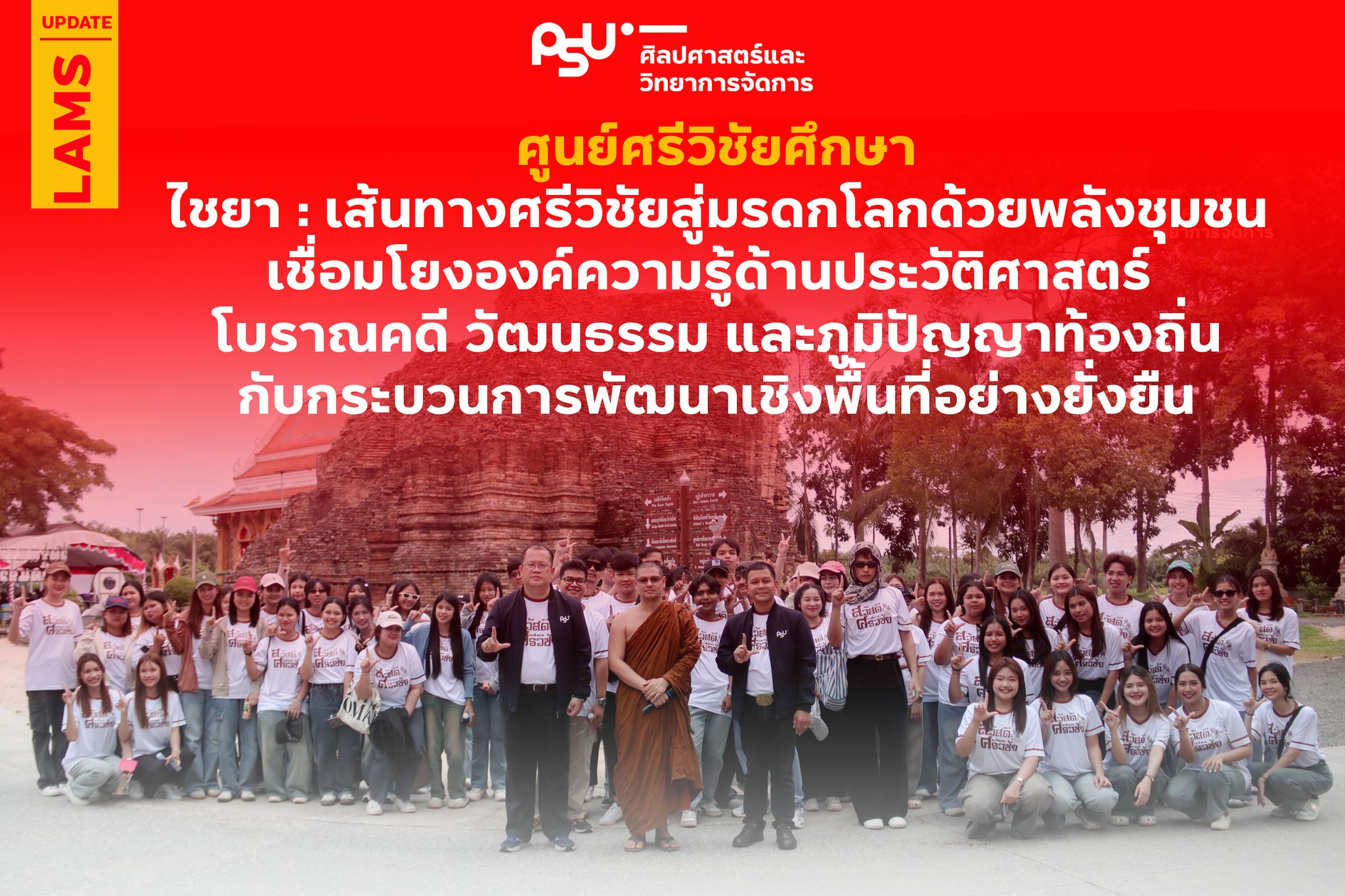 ศูนย์ศรีวิชัยศึกษา คณะศิลปศาสตร์และวิทยาการจัดการ มหาวิทยาลัยสงขลานครินทร์ วิทยาเขตสุราษฎร์ธานี จัดโครงการ “ไชยา : เส้นทางศรีวิชัยสู่มรดกโลกด้วยพลังชุมชน” ระหว่างวันที่ 30–31 สิงหาคม 2568