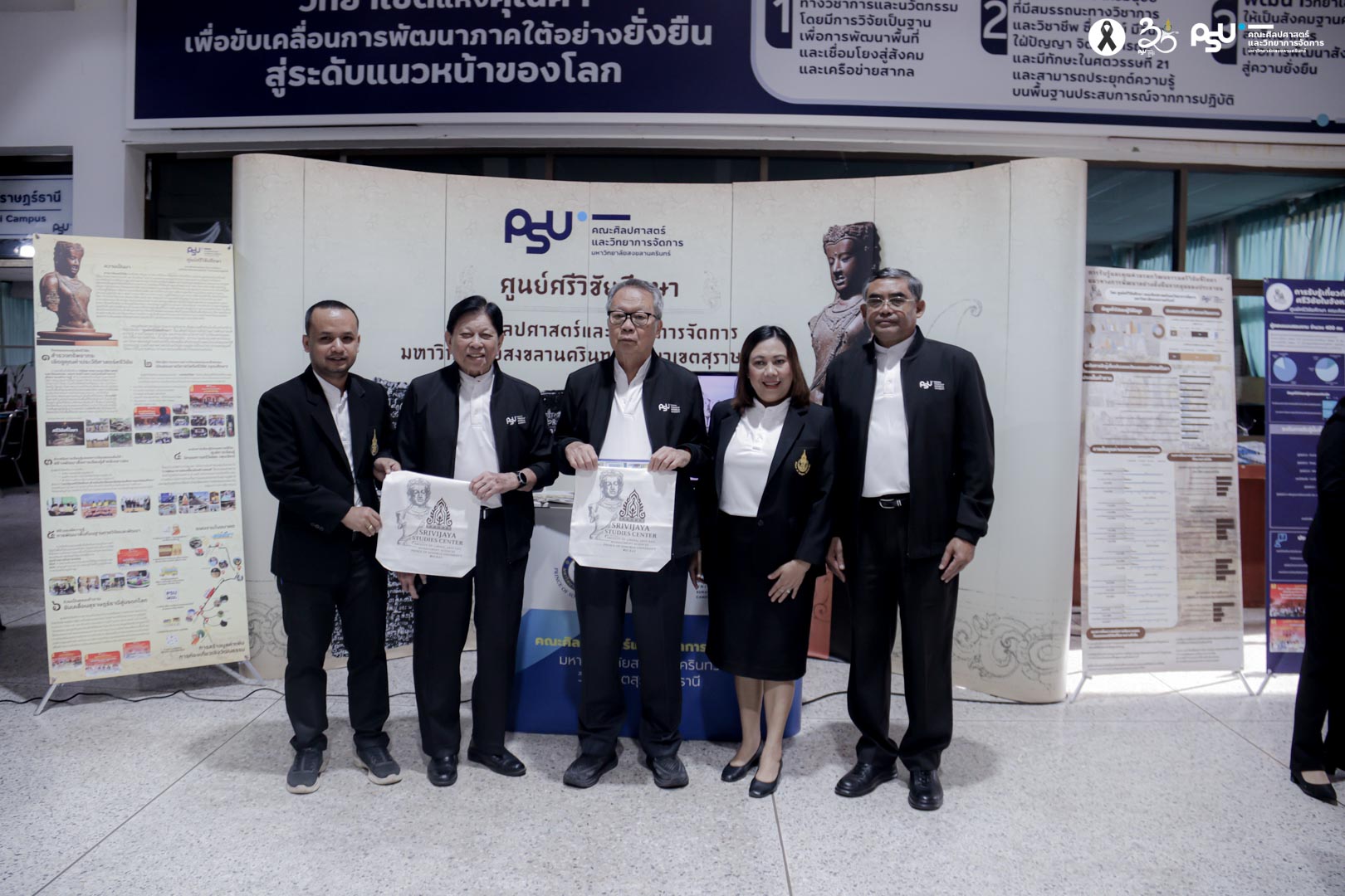 ในการนี้ คณะศิลปศาสตร์และวิทยาการจัดการ ได้นำเสนอผลงานการดำเนินงานของ ศูนย์ศรีวิชัยศึกษา ครอบคลุมภารกิจด้านการศึกษา วิจัย และการบริการวิชาการแก่สังคม โดยมุ่งเน้นการสร้างสรรค์และอนุรักษ์วัฒนธรรมพื้นถิ่น การขับเคลื่อนพื้นที่อำเภอไชยาสู่การเป็นแหล่งมรดกโลก ตลอดจนรายงานผลการดำเนินงานที่ผ่านมาและแผนการปฏิบัติงานในระยะต่อไป
