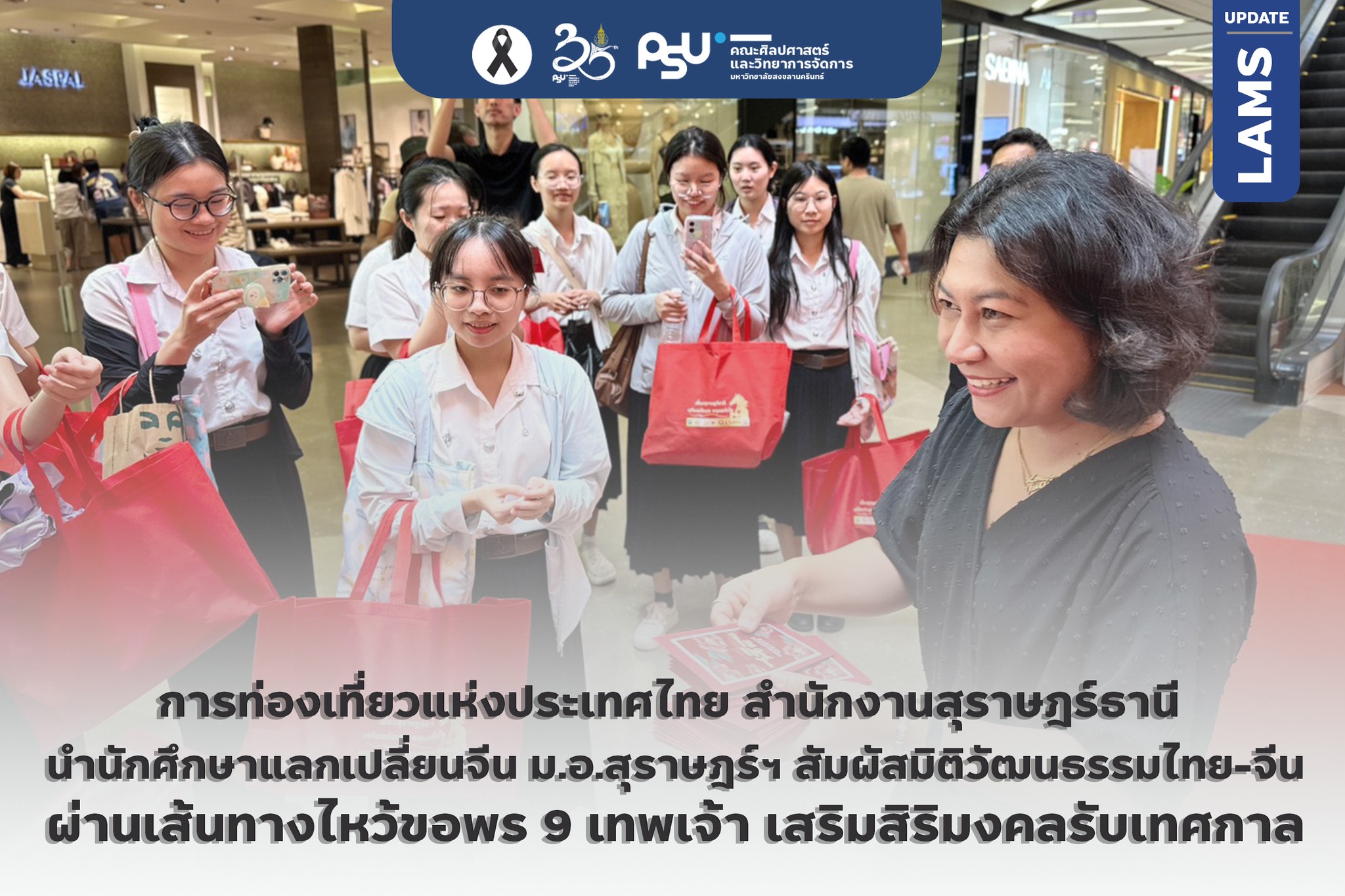 การท่องเที่ยวแห่งประเทศไทย สำนักงานสุราษฎร์ธานี นำนักศึกษาแลกเปลี่ยนจีน ม.อ.สุราษฎร์ฯ สัมผัสมิติวัฒนธรรมไทย-จีน ผ่านเส้นทางไหว้ขอพร 9 เทพเจ้า เสริมสิริมงคลรับเทศกาล