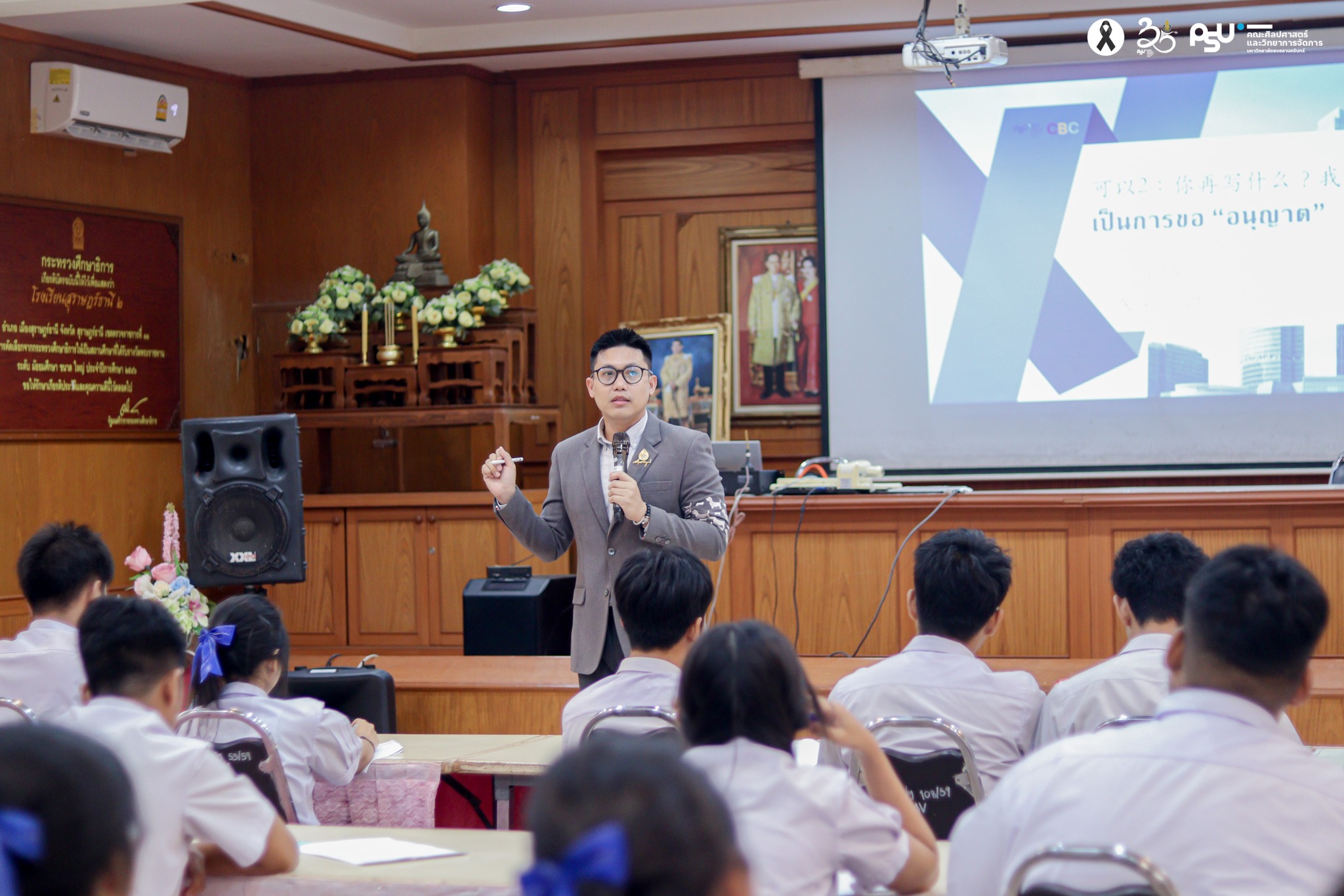 ในการนี้ ได้รับเกียรติจาก ผู้ช่วยศาสตราจารย์ ดร.พิชัย แก้วบุตร รองคณบดีฝ่ายสื่อสารองค์กรและวิเทศสัมพันธ์ คณะศิลปศาสตร์และวิทยาการจัดการ มหาวิทยาลัยสงขลานครินทร์ วิทยาเขตสุราษฎร์ธานี เป็นวิทยากรบรรยายและให้แนวทางการเตรียมความพร้อมสู่การสอบ HSK อย่างเป็นระบบ